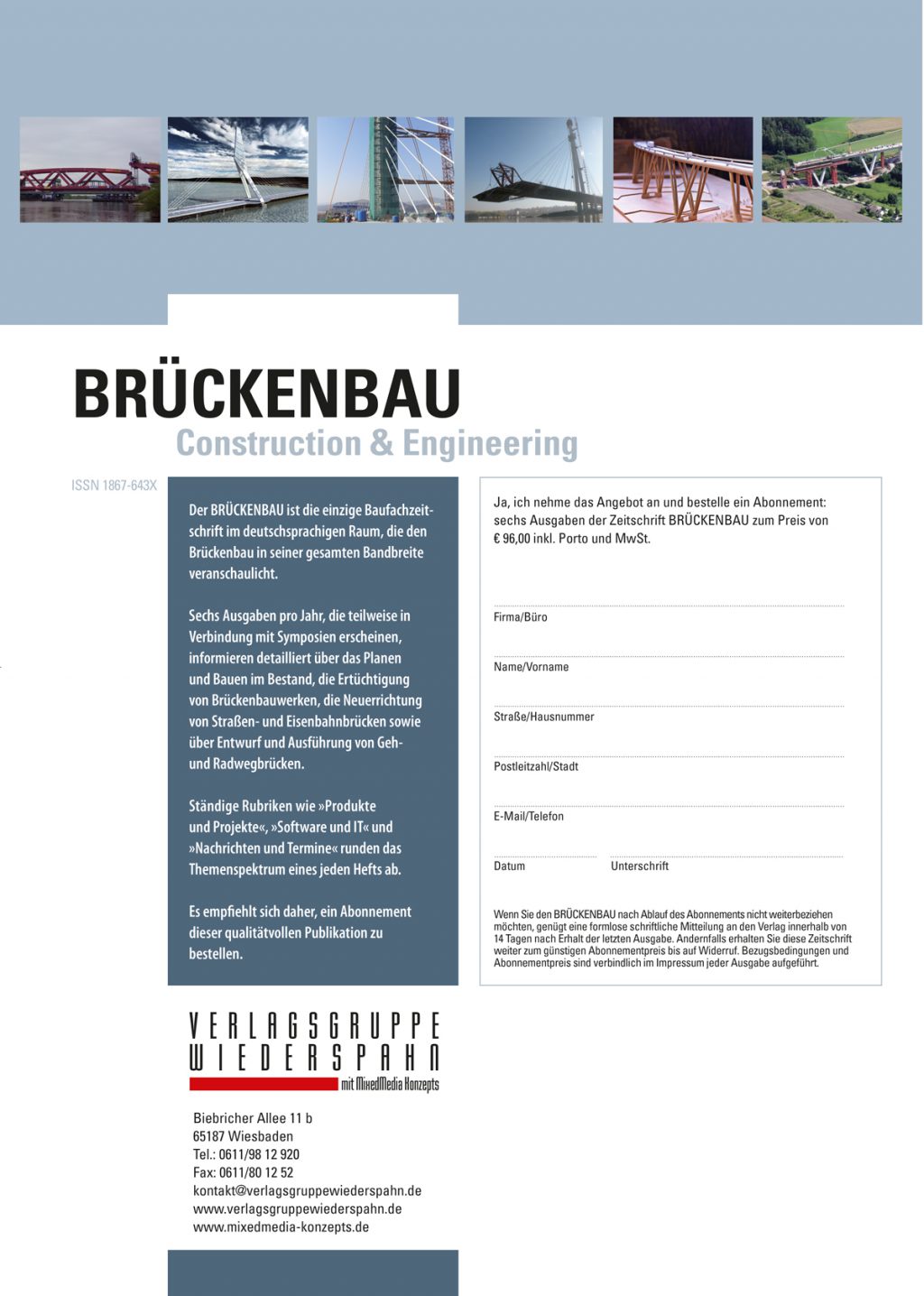 Der BRÜCKENBAU ist im deutschsprachigen Raum die einzige Fachzeitschrift zu diesem Thema.